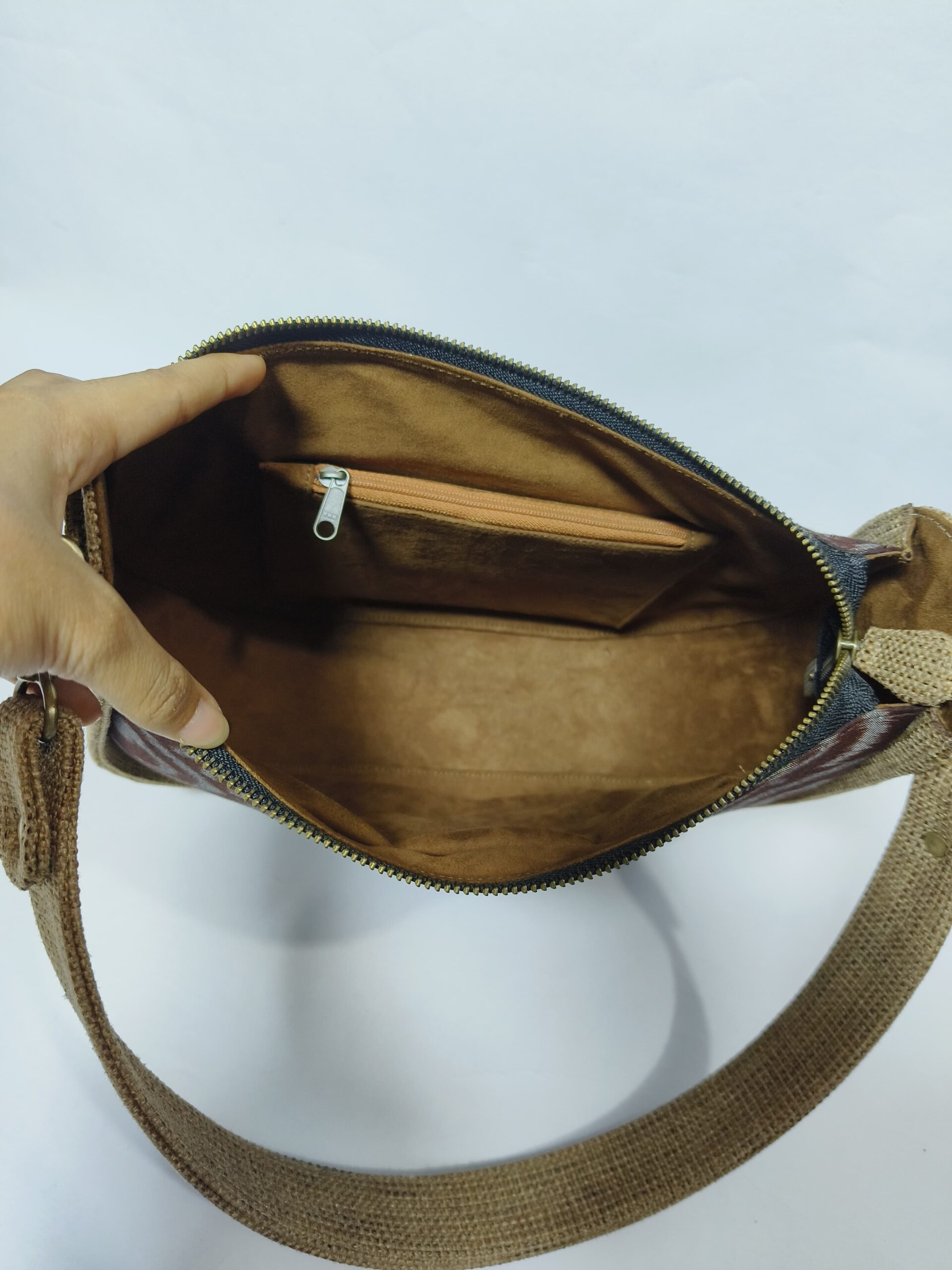 Bahan: Goni dipadukan dengan kain tenun endek khas tradisional Bali