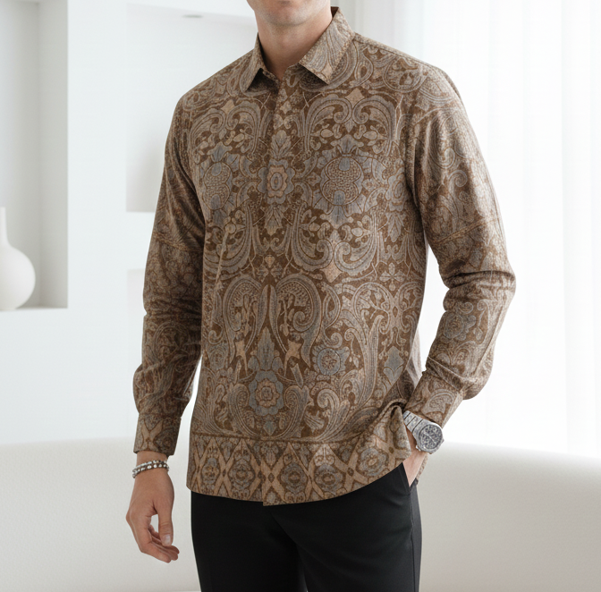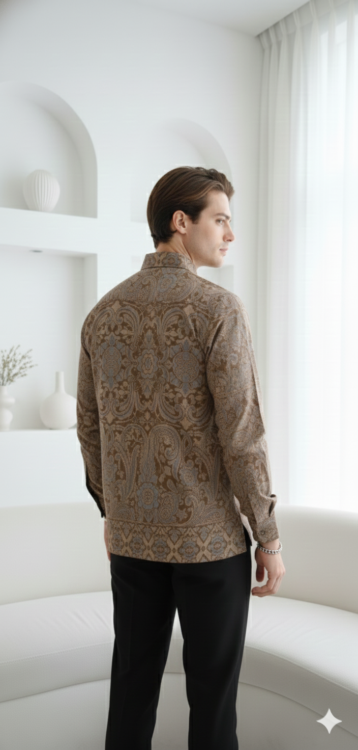 Kemeja Pria Lengan Panjang Tenun Endek Catri