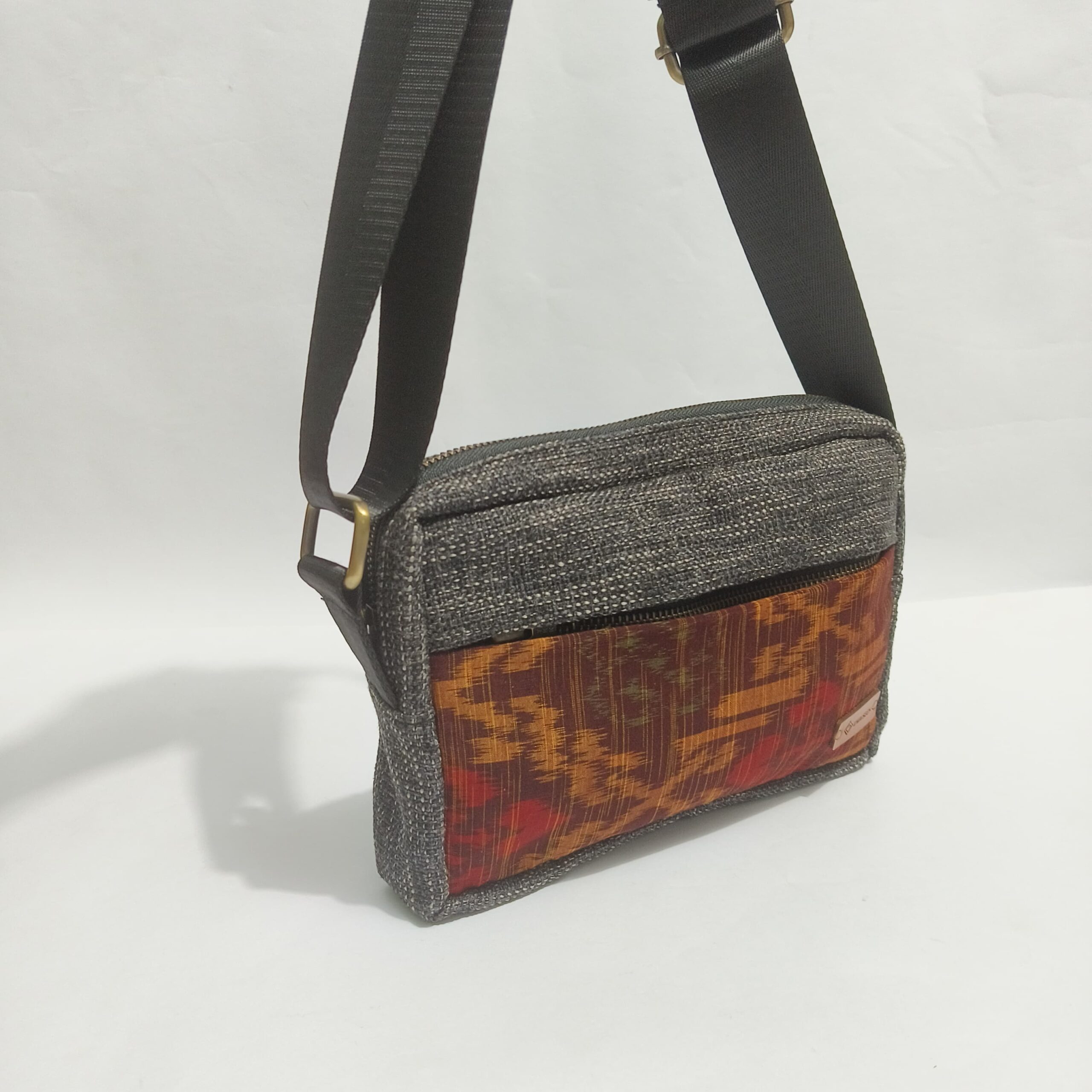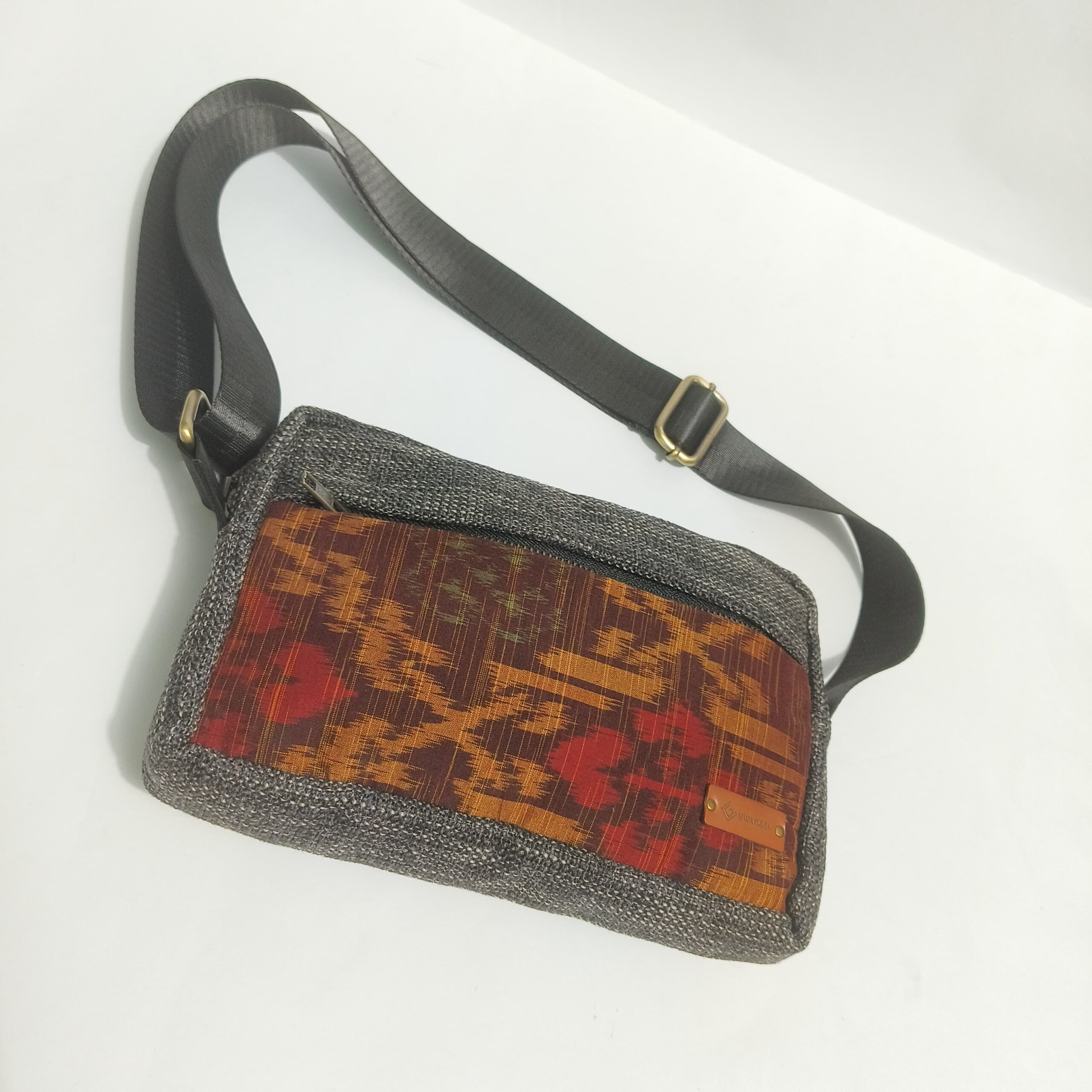 Bahan: Bahan goni kombinasi kain tenun endek (halus, tidak berserat)
