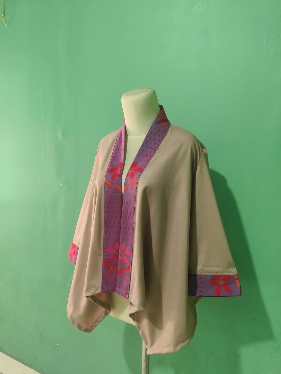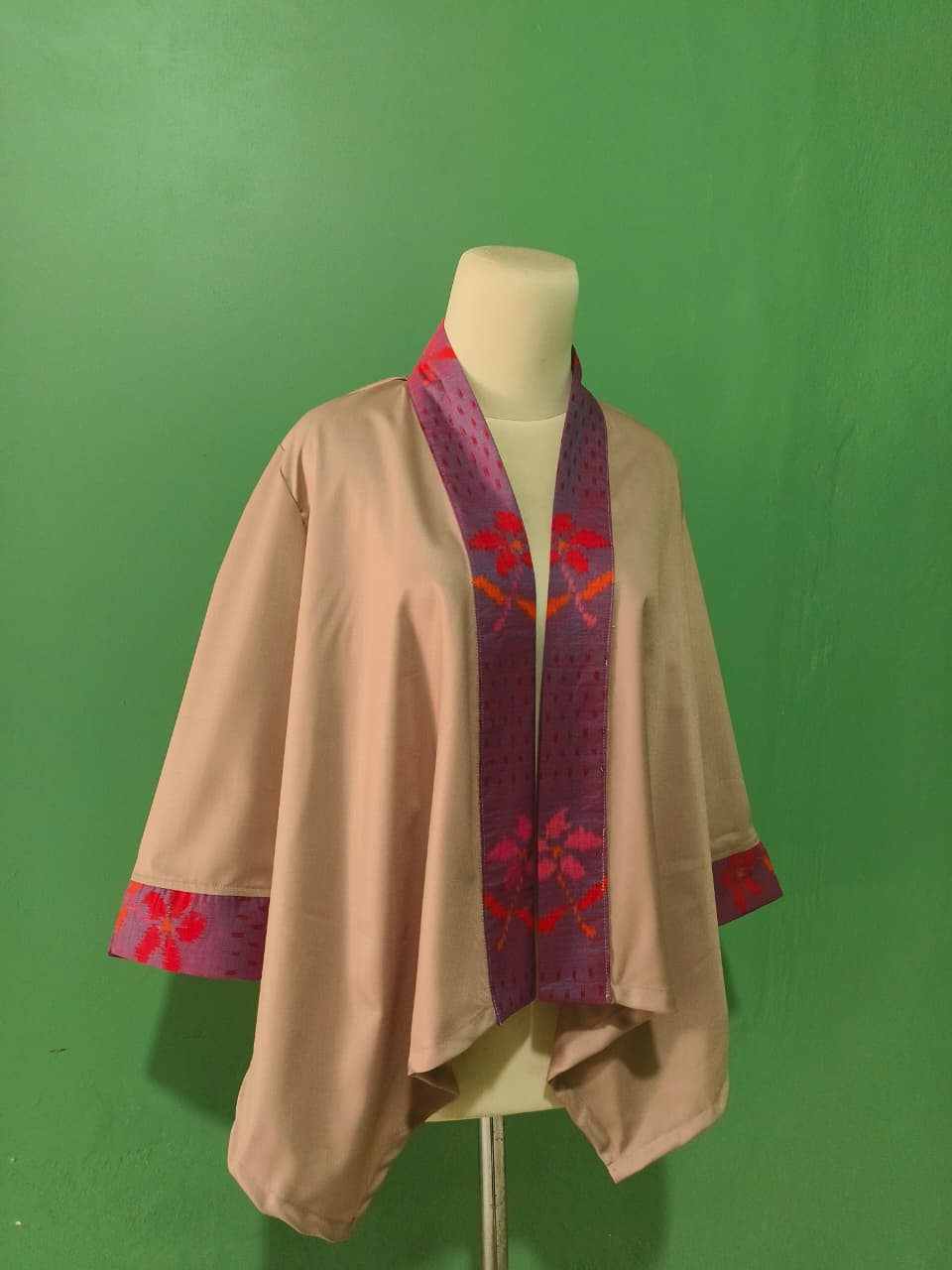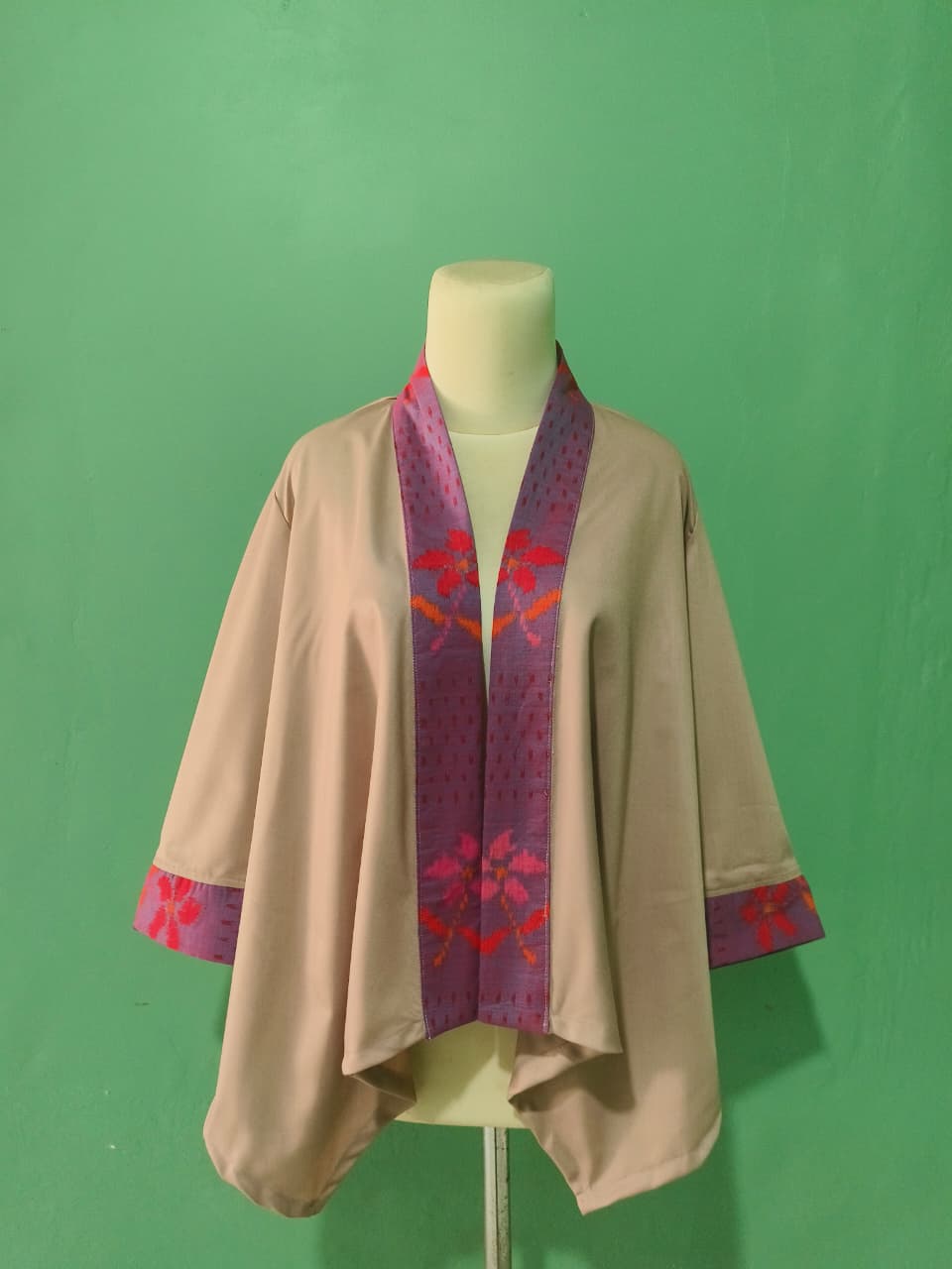 Terdapat kombinasi tenun endek dibagian leher dan lengan