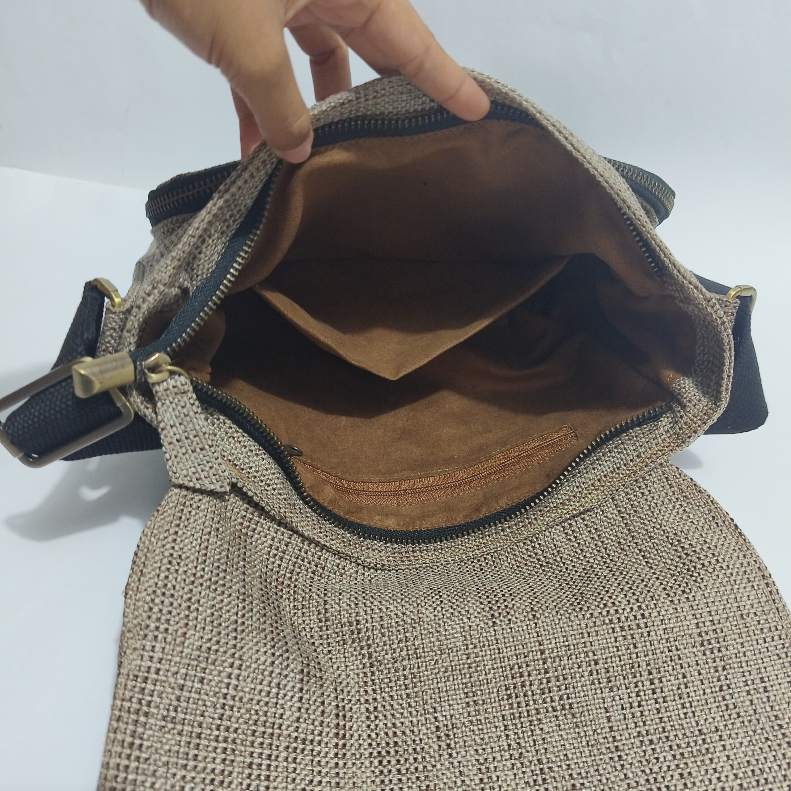 Jadilah yang pertama memberikan ulasan “Pedro Slingbag Tas Selempang Goni Handmade”